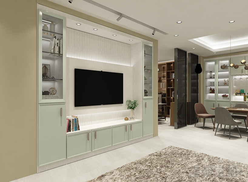 1.暖白三胺板配薄荷绿吸塑板,配色和谐舒适