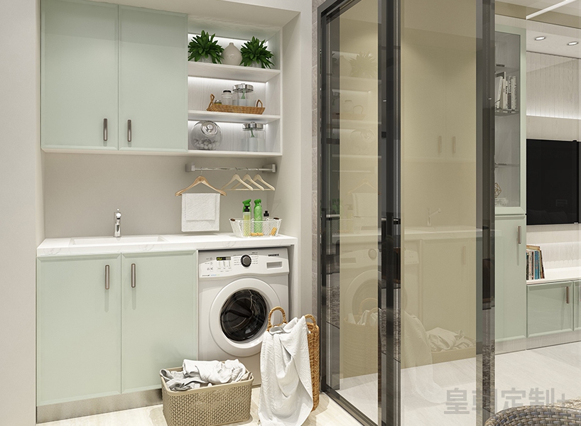 1.暖白三胺板配薄荷绿吸塑板,配色和谐舒适