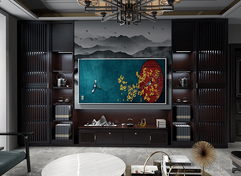 1.简约的线条和枣红榆木纹的配色,古朴厚重,简而不空