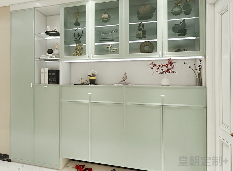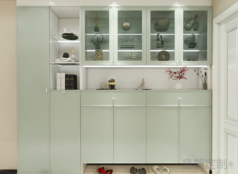 1.暖白三胺板配薄荷绿吸塑板,配色和谐舒适