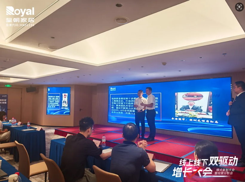 在大会表彰环节,皇朝家居对市场表现突出的经销商颁发荣誉奖项,既对优秀者作出肯定,同时也为全体经销商树立了学习标杆,现场掌声雷动,将氛围推向高潮。